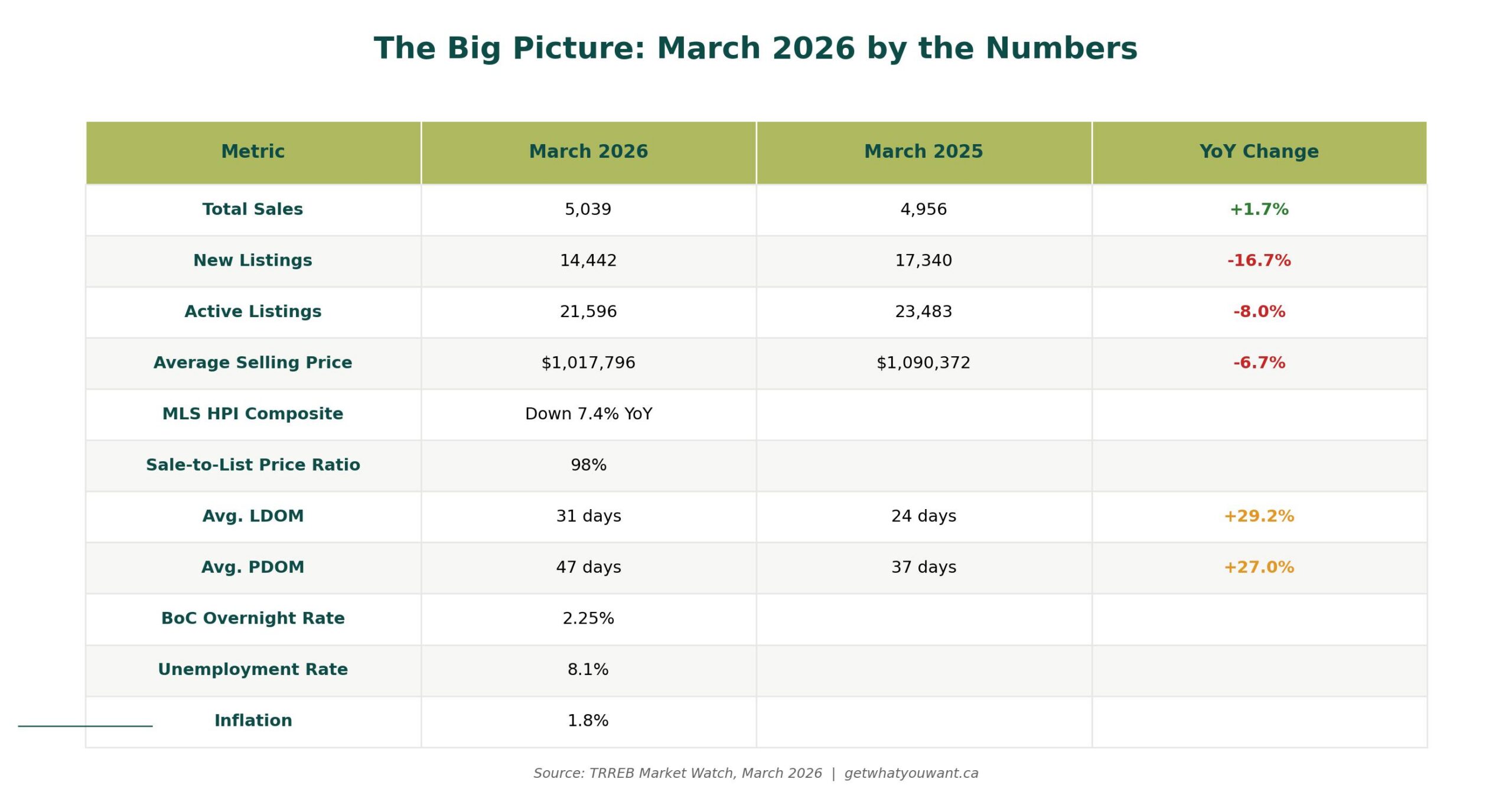 If you’ve been following the headlines, you’d think Toronto’s real estate market is in freefall. Prices are down, listings are up, and everybody’s talking about the “correction”. But Toronto’s March 2026 real estate statistics tell a more nuanced story, one where the market is quietly shifting in ways that most people aren’t paying attention to.
