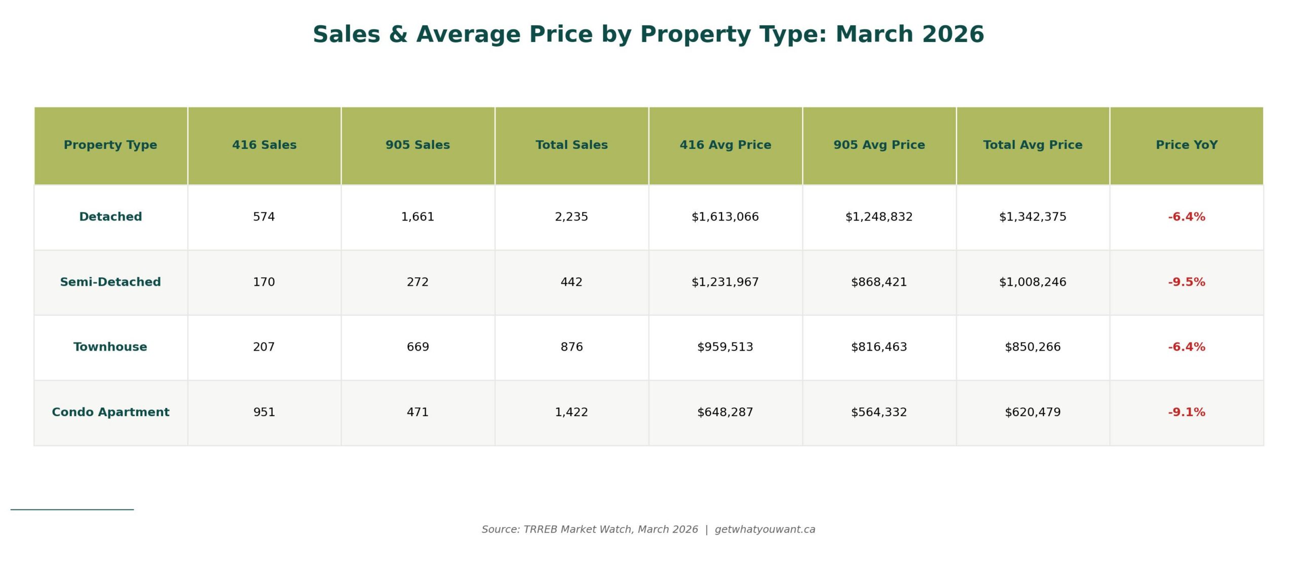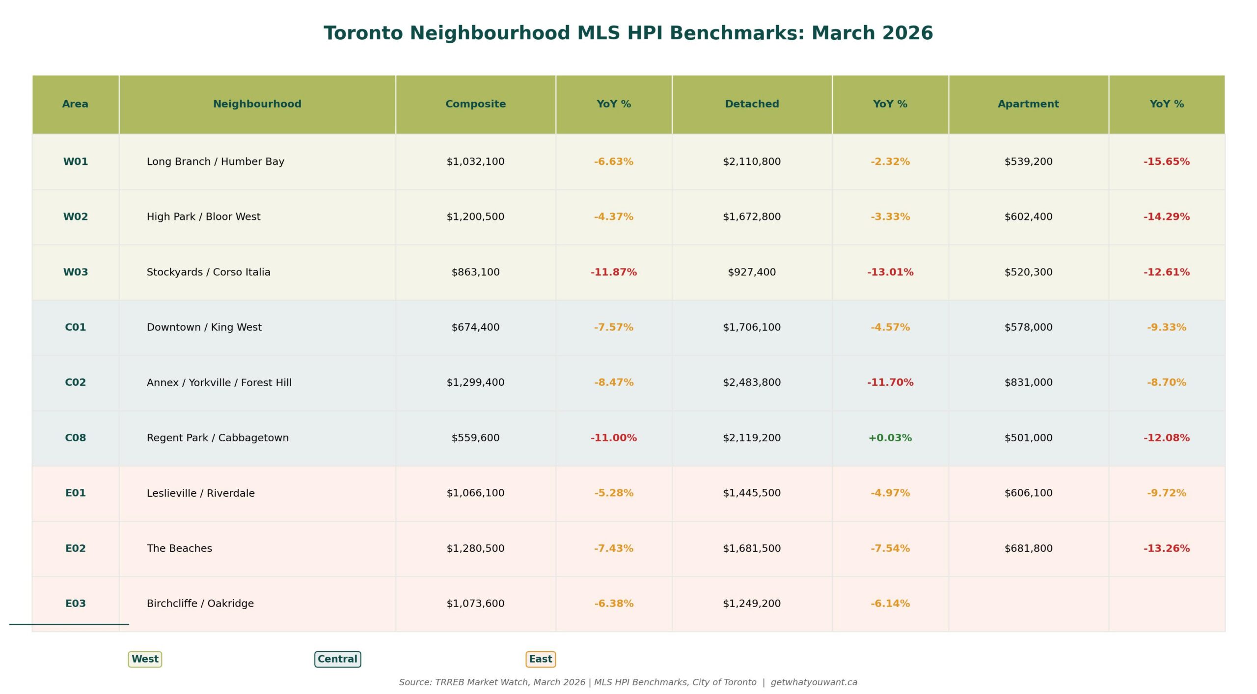 All data below is from the TRREB MLS HPI for the City of Toronto, March 2026.